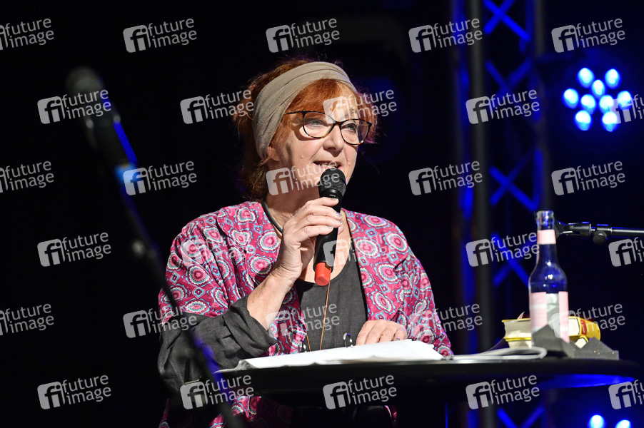 Dagmar Gelbke bei der musikalisch-satirischen Buchpremiere 'Ostsüppchen bleibt Ostsüppchen 3.0' mit Dagmar Gelbke und Gästen in der Wabe. Berlin, 06.11.2024