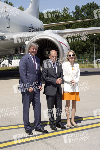 Michael Haidinger, Olaf Scholz und Amy Gutmann bei der ILA-Eröffnung mit anschließendem Rundgang auf dem ILA-Gelände am Flughafen BER Berlin-Brandenburg. Berlin, 22.06.2022