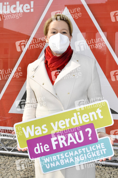 Franziska Giffey bei der DGB-Aktion zum Equal Pay Day vor dem Brandenburger Tor. Berlin, 10.03.2021