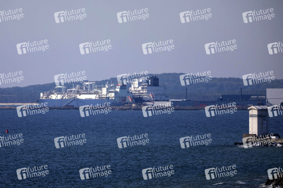 Im Industriehafen Mukran auf Rügen ist seit dem 02. September 2024 das Energie-Terminal Mukran im Regelbetrieb. Im Regelbetrieb soll ein LNG-Tanker etwa alle 3 bis 4 Tage das Terminal anlaufen und seine Ladung löschen. Das LNG wird in Mukran regasifiziert, über eine Pipeline nach Lubmin transportiert und dort in das deutsche Ferngasleitungsnetz eingespeist. Mukran, 18.09.2024