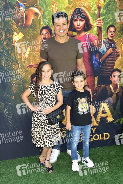 Mario Lopez mit Tochter Gia Francesca Lopez und Sohn Dominic Lopez bei der Weltpremiere des Kinofilms 'Dora und die goldene Stadt / Dora and the Lost City of Gold' in den Regal Cinemas L.A. Live. Los Angeles, 28.07.2019