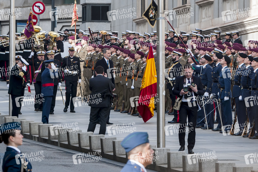 König Felipe VI. von Spanien bei der feierlichen Eröffnung der XIV. Legislatur des Congreso de los Diputados, des Unterhauses des spanischen Parlamentes, vor dem Palacio de las Cortes. Madrid, 03.02.2020