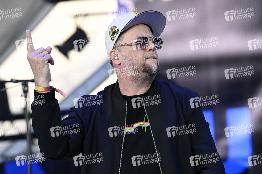 Smudo von Die Fantastischen Vier live bei der Abschlussveranstaltung auf dem Demokratiefest zu 75 Jahren Grundgesetz auf der Bühne zwischen Kanzleramt und dem Deutschen Bundestag. Berlin, 26.05.2024