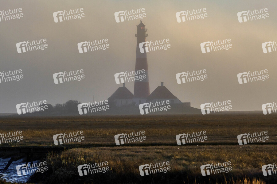 Der Leuchtturm Westerheversand auf der Halbinsel Eiderstedt. Westerhever, 27.02.2021