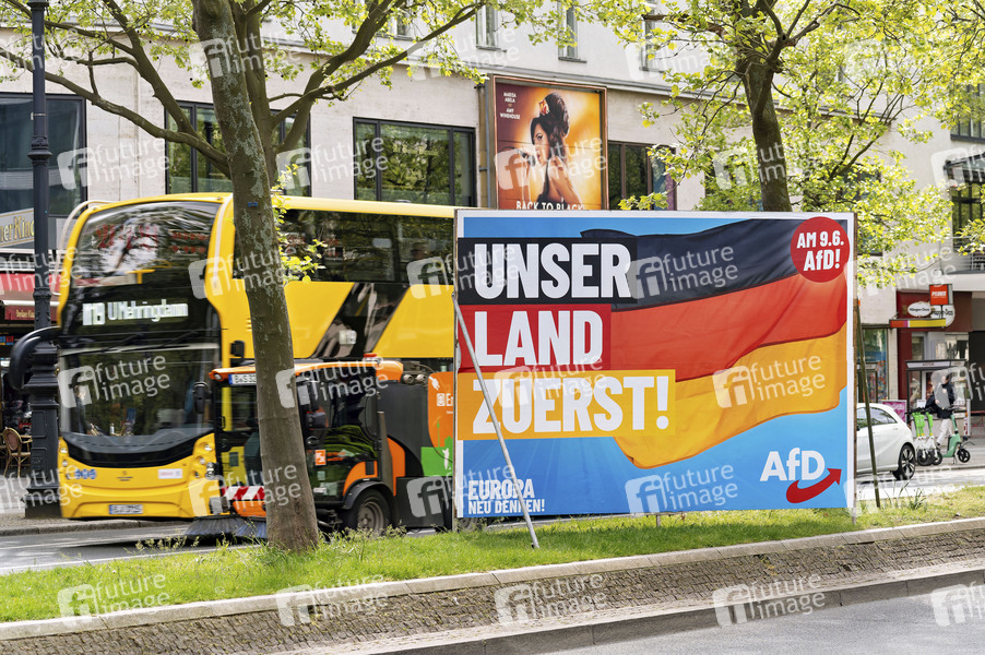 Ein Plakat der Partei AfD zur Europawahl. Vom 6. bis 9. Juni 2024 wählen die Bürgerinnen und Bürger der Europäischen Union (EU) zum zehnten Mal das Europäische Parlament. In Deutschland wird am Sonntag, 9. Juni 2024 gewählt. Berlin, 23.04.2024