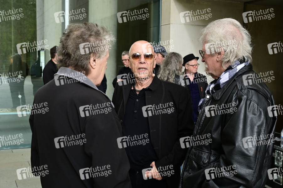 Toni Krahl von City bei der Gedenkfeier für den verstorbenen Gitarristen von City, Fritz Puppel, im Krematoriumsgebäude Baumschulenweg. Berlin, 10.04.2024