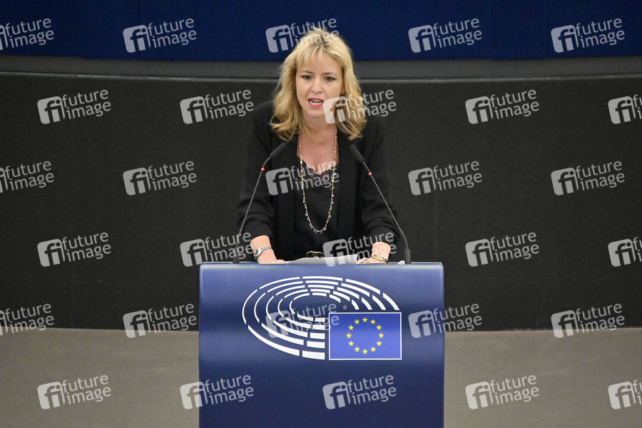 Europäisches Parlament, Plenum, Plenartagung, Plenardebatte, Plenarsitzung, Debatte, Rede, Politik, Strasbourg, Strassburg, Europaparlament, Europa-Politik, EU-Abgeordnete, EU-Parlament, EP, Parlament der Europäischen Union, European Parliament, European Union, Parlamentum Europaeum, MdEP, Mitglied des Europäischen Parlaments, Politikerin, Italien, Lega, Fraktion Identität und Demokratie, ID