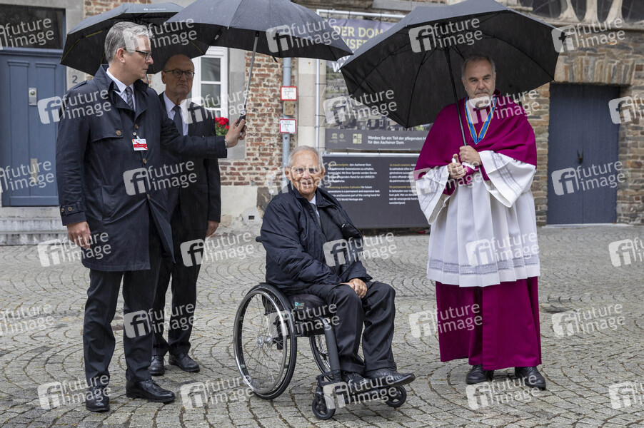 Wolfgang Schäuble und Rolf-Peter Cremer beim ökumenischen Gottesdienst für die Opfer der Flutkatastrophe im Hohen Dom zu Aachen. Aachen, 28.08.2021