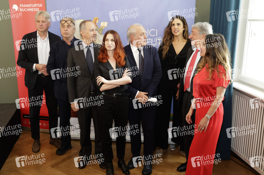Juergen Boos (Direktor der Frankfurter Buchmesse), Stefano Boeri (Architekt und Stadtplaner), Armando Varricchio (Botschafter Italiens in der Bundesrepublik Deutschland), Ginevra Lamberti (italienische Autorin), Mauro Mazza (Sonderbeauftragter der italieni