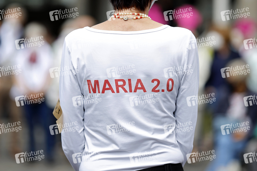 Maria 2.0 Logo, Demo, Demonstration, Pilger, Pilgermarsch, Protestmarsch, Aufbruch nach Köln, Maria 2.0, Aktivisten, Kirche, Gläubige, Christen, Erzbistum Köln, Kundgebung, Protest gegen Woelki, Missbrauch, Missbrauchskandal, Forderungen, Aufarbeitung, Symbolbild, Symbolfoto