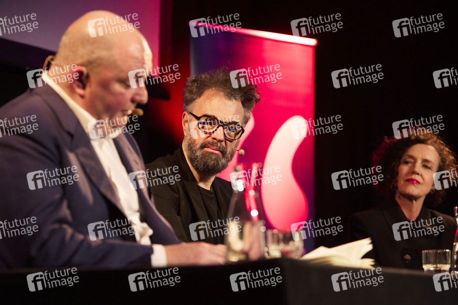 Jörg Thadeusz, Jan Schomburg und Maria Schrader bei der lit.Cologne 2024 Veranstaltung 'Ektoplasma, Séancen, Geisterseher! Über die Möglichkeit eines Wunders' in der Kulturkirche. Köln, 16.03.2024