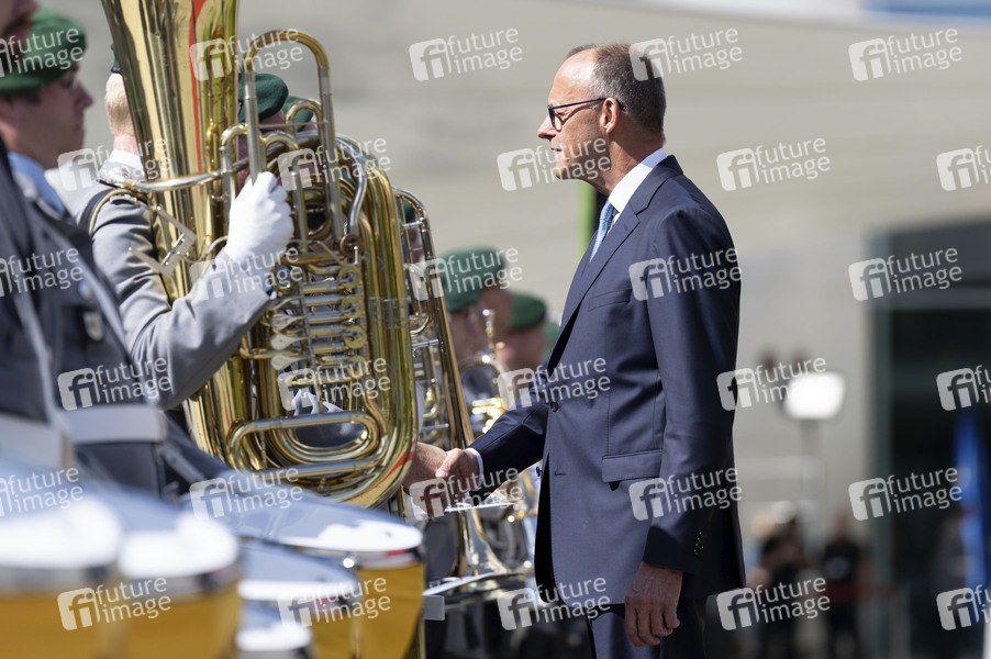 Friedrich Merz beim Empfang des Premierministers von Kanada mit militärischen Ehren zu einem gemeinsamen Gespräch mit anschließendem Pressestatement im Bundeskanzleramt. Berlin, 26.08.2025