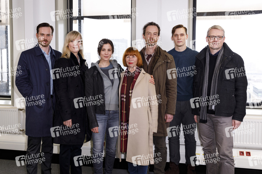 Florian Bartholomäi, Anna Schudt, Aylin Tezel, Sonja Goslicki, Jörg Hartmann, Rick Okon und Frank Tönsmann beim Fototermin am Set des ARD-Krimis 'Tatort - Monster' im RAG-Hochhaus. Dortmund, 14.03.2019