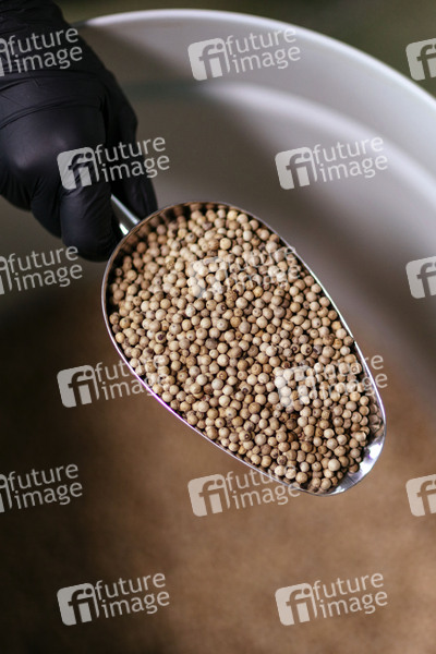 Gewürze, Gewürz, weißer Pfeffer, echter Pfeffer, weisse Pfefferkörner, Frucht des schwarzen Pfeffers, Pfefferstrauch, Piperin, Covid19, Covid-19, Corona, Corona-Virus, Coronavirus, Coronaviren, Corona-Viren, Heilmittel, Vorbeugung, Hauspotheke, Piper Nigrum, Aroma, aromatisch, Indonesien, Organic, Pfeffer, Spices, Sulawesi, Protein S, Hauptprothease, Immunsystem, Abwehrkräfte, Gesundheit, Heilgewürz, scharf, Gewürzhandel, Bio-Pfeffer, indonesischer Pfeffer, Symbolbild, Symbolfoto
