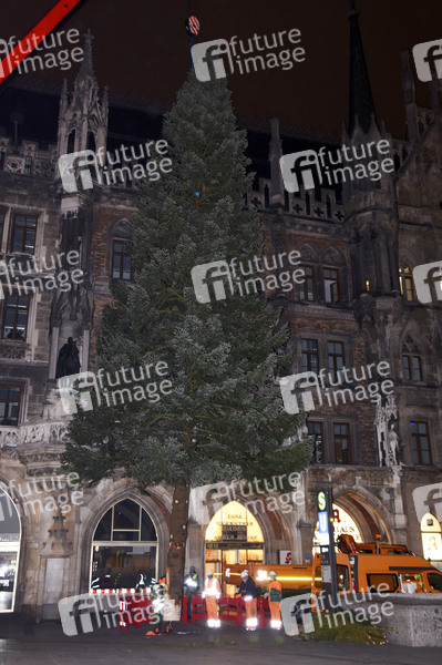 Aufstellung des Christbaums aus Steingaden auf dem Marienplatz vor dem Rathaus. München, 25.11.2020