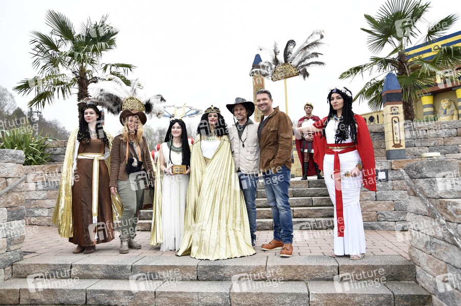 Tommy Scheel und Hardy Krüger jr. mit Statisten bei der Eröffnung des neuen Themenbereichs 'Land der Pharanonen' im Legoland Deutschland Resort. Günzburg, 06.04.2019