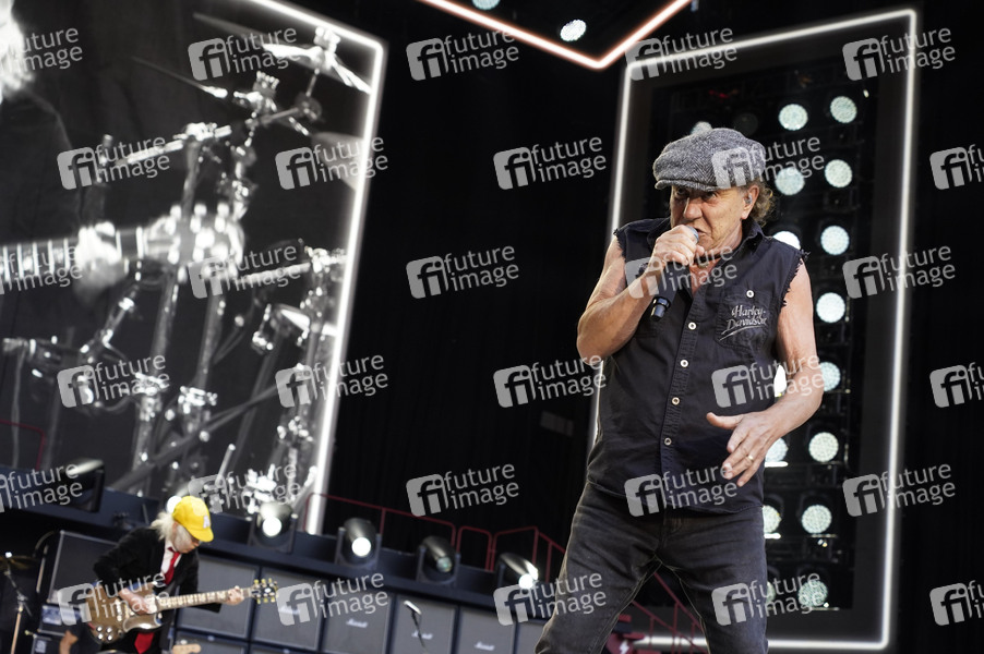 Angus Young und Brian Johnson von AC/DC live bei einem Konzert der 'Power Up Tour - Europa 2025' im Olympiastadion Berlin. Berlin, 30.06.2025