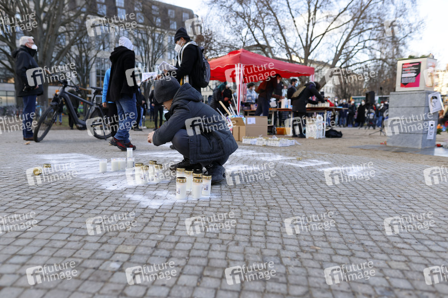 Gedenkveranstaltung zum ersten Jahrestag des rassistischen Anschlags in Hanau am Oranienplatz. Vor einem Jahr tötete ein Rechtsextremist in Hanau zehn Menschen und sich selbst. Berlin, 19.02.2021