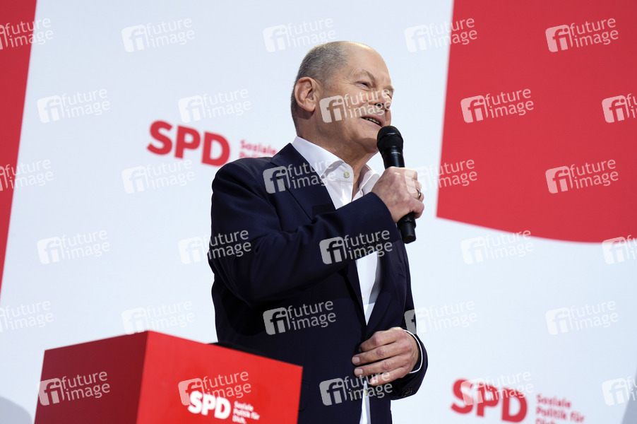 Olaf Scholz bei der Pressekonferenz der SPD nach den Gremiensitzungen zur Beratung aktueller Themen und der Nominierung des SPD-Kanzlerkandidaten für die Bundestagswahl im Atrium vom Willy-Brandt-Haus. Berlin, 25.11.2024