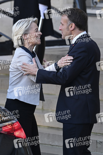 Ursula von der Leyen und Emmanuel Macron beim Treffen der Koaltion der Willigen zu Beratung über die militärische Unterstützung für die Ukraine im Élysée-Palast. Paris, 06.01.2026