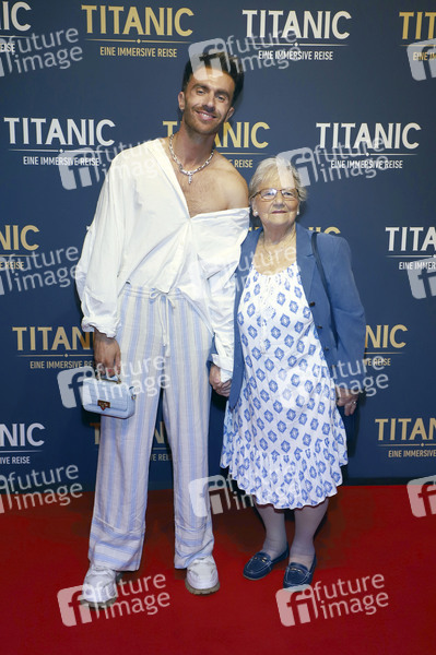 Felix Nieder mit Oma Waltraud Bräuß bei der Eröffnung der Ausstellung 'Titanic: Eine Immersive Reise' in der Expo-Halle im Nikolai-Quartier. Hamburg, 14.04.2025