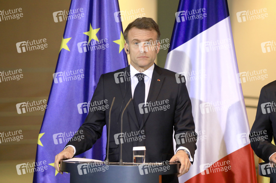 Emmanuel Macron beim Empfang des Staatspräsidenten der Französischen Republik zu einem gemeinsamen Gespräch mit dem Bundeskanzler mit anschließendem Pressestatement im Bundeskanzleramt. Berlin, 18.03.2025