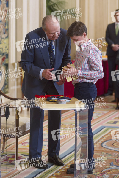 König Juan Carlos empfängt die Gewinner des 'Qué es un Rey para ti' Schulwettbewerbs im Zarzuela Palast, Madrid