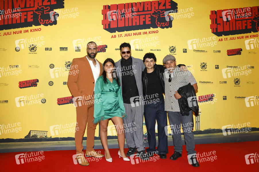 Amer El-Erwadi, Norah Estelle Martha Malachowski, Yasin El Harrouk, Adrian Kourosh und Gast bei der Premiere des Kinofilms '#SchwarzeSchafe' im Kino in der KulturBrauerei. Berlin, 15.07.2025