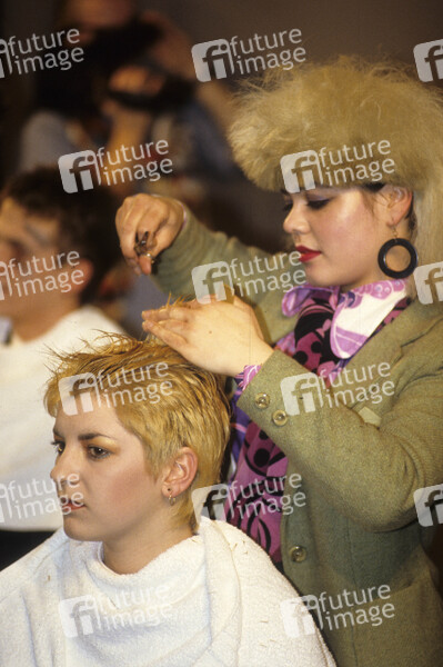 Vidal Sassoon Traineee Hair Show im Sassoon Hairstudio. London, 25.10.1984