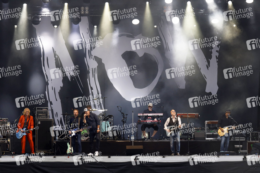 Christof Stein-Schneider, Christian Decker, Rainer Schumann, Kai Wingenfelder, Gero Drnek, Martin Huch und Thorsten Wingenfelder von Fury in the Slaughterhouse live beim Strandkorb Open Air im Sparkassenpark Mönchengladbach. Mönchengladbach, 30.07.2021