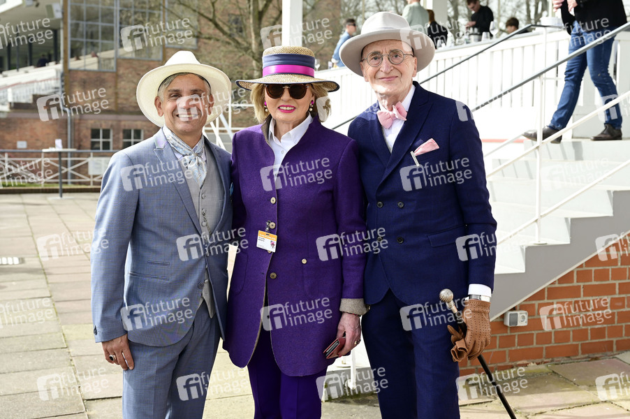 Carlos Eduardo Davila Federico, Tini Gräfin von Rothkirch und Günther Krabbenhöft bei der Großen Saisoneröffnung 2024 auf der Rennbahn Hoppegarten. Berlin, 31.03.2024