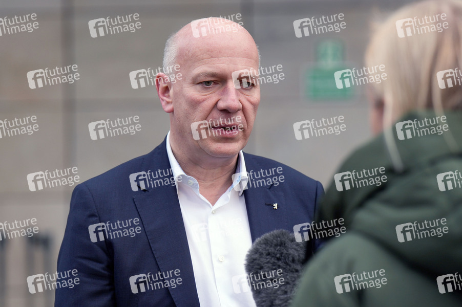 Kai Wegner beim Pressestatement zur Ministerpräsidentenkonferenz zur Flüchtlingspolitik von Bund und Ländern in der Vertretung des Landes Hessen beim Bund. Berlin, 06.03.2024