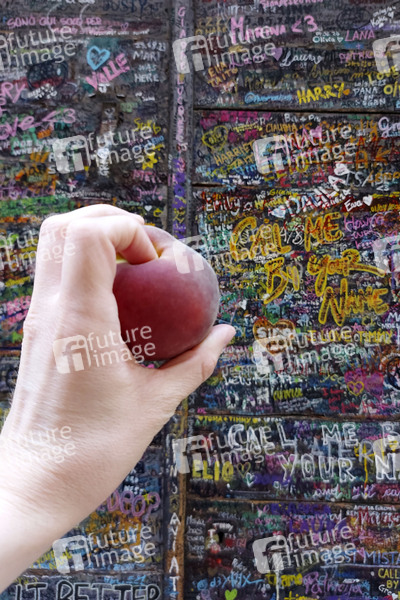 Boschaften von Fans an einer Tür aus einer Szene des Films mit Pfirsich