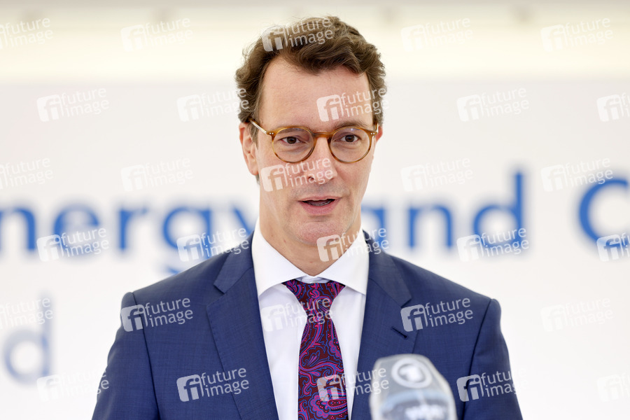 Politiker, CDU, Union, Ministerpräsident des Landes Nordrhein-Westfalen, NRW-Ministerpräsident, Auftritt, Shell, Industrie, Raffinerie, Royal Dutch Shell, Produktionsanlage, Gaskonzern, Gasindustrie, Ölindustrie, Ölkonzern, Treibstoff, Klimaziele, Förderung, Energiewende, Chemieindustrie, Kohlendioxid-Ausstoß, Gas, Erneuerbare Energien, Umweltschutz, Energietechnik, Umweltpolitik, Gaspreis, Gaspreise, Industriepolitik, Energiepolitik, Shell Energy, Chemicals Park Rheinland, CO2-neutral, Nachhaltigkeit, CO2-Neutralität, Biogas, Bio-Gas, Bio-LNG, flüssiges Gas, Biomethan, Methangas, Methan-Gas, Baustelle