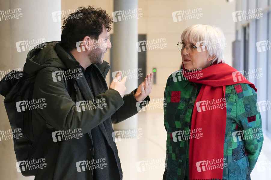 Felix Banaszak und Claudia Roth vor der Fraktionssitzung der Bündnis 90/Die Grünen-Bundestagsfraktion im Reichstagsgebäude. Berlin, 03.12.2024