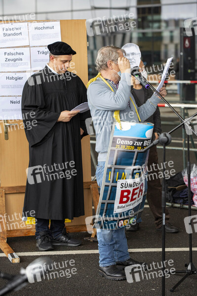 Protestaktionen von Mitgliedern des Bündnisses 'Am Boden bleiben' bei der Eröffnung des Flughafens Berlin-Brandenburg (BER). Schönefeld, 31.10.2020