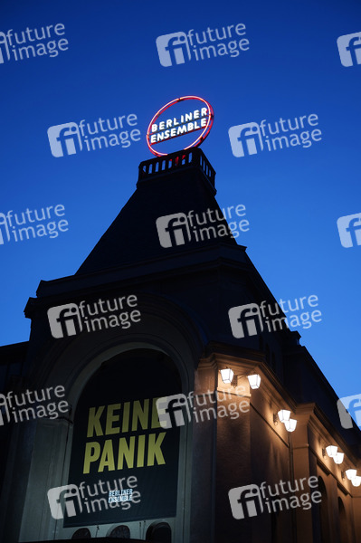 Das Logo auf dem Dach vom Theater Berliner Ensemble am Bertolt-Brecht-Platz. Berlin, 03.07.2020