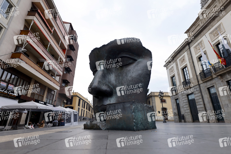 Stadtleben, Sightseeing, Kanaren, kanarische Inseln, Teneriffa, Urlaub, Urlaubsgebiet, Tourismus, Touristik, Tourismus-Branche, Stadtansicht, Urlaubsort, Erholungsgebiet, Reise, Reiseziel, Reisen, Insel, Inselleben, Insulaner, Plaza Isla de la Madera, Skulptur, Symbolbild, Symbolfoto