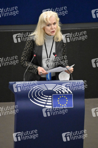 Tiertransporte, Plenartagung, Plenardebatte, Plenarsitzung, Debatte, Rede, Außenpolitik, Strasbourg, Europaparlament, EU-Parlament, EP, Parlament der Europäischen Union, Parlamentum Europaeum, MdEP, Mitglied des Europäischen Parlaments, Politikerin, Frankreich, Rassemblement National, RN, Fraktion Identität und Demokratie, ID