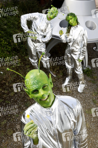 Bodypainting, Body-Painting, Cosplay, Cosplayer, Körperkunst, Körperfarben, Farbe, Bemalung, Kunst, Make-up, Latexapplikationen, Maskenbildnerei, unbekanntes Flugobjekt, Außerirdische, fliegende Untertasse, Raumschiff, fremde Wesen, Landung, Invasion, Science Fiction, body painting, body art, latex applications, unknown flying object, spacecraft, flying saucer, alien, strangers, landing, colors