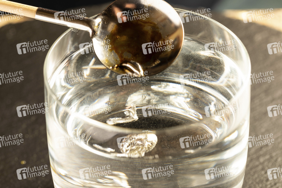 Zinn, Tradition, Schmelzen, Bleigießen-Verbot, Kerze, Schmelzlöffel, Kerzenflamme, Wasserglas, Silvesterbrauch, Jahreswechsel, Symbolbild, Themenbild