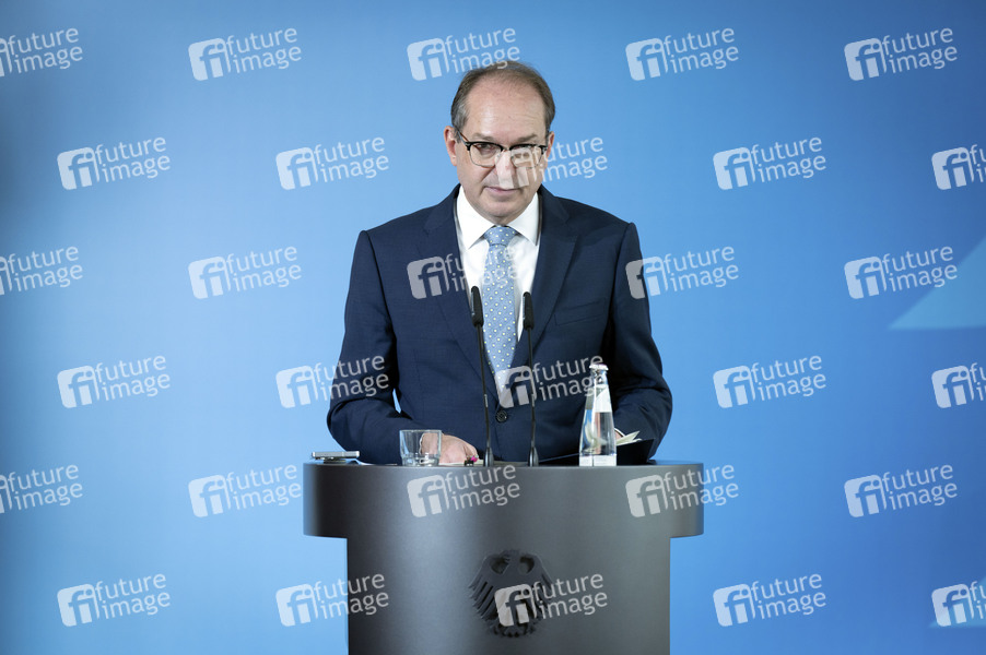 Alexander Dobrindt beim Pressestatement zu den Beschlüssen des Bundeskabinetts im Bundesministerium des Innern. Berlin, 08.10.2025