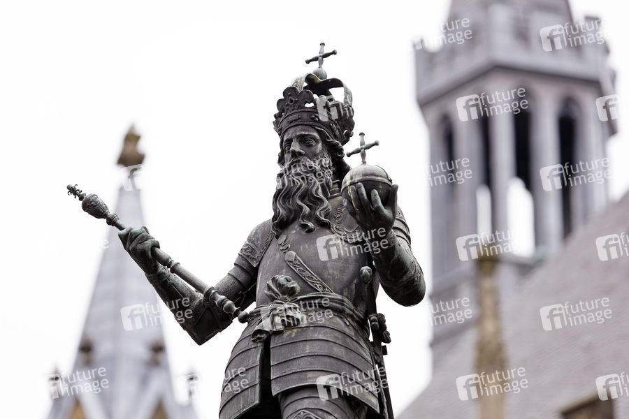 Karl der Große, Karol, Karolinger, Mittelalter, Frühmittelalter, Geschichte, Deutsche Geschichte, Historie, Kaiser, König, Statue, Aachen, Brunnen, Karlsbrunnen, Carolus Magnus, Karolus Magnus, Charlemagne, Fränkisches Reich, Kaiserwürde, Franken, Frankenreich, Herrscher, Feldzüge, Macht, Reich, Europäische Geschichte, Herrschaft, Regent, römisch-deutscher Kaiser, französischer König, Karl I., Karl der Erste, Symbolbild, Symbolfoto