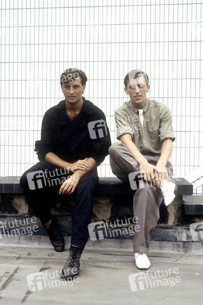 Mark Fox und Phil Smith von Haircut 100 bei einem Photoshooting auf dem Dach von Arista Records. London, 02.11.1983