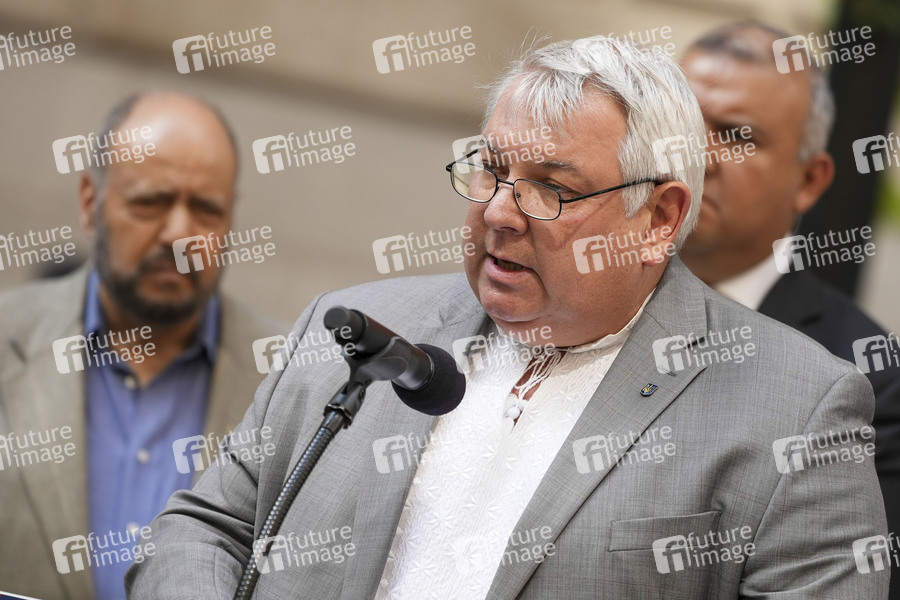 Oleksii Holubov bei der Zeremonie zum Hissen der Flagge der Ukraine anlässlich des 31. Unabhängigkeitstages der Ukraine in Bowling Green. New York, 24.08.2022