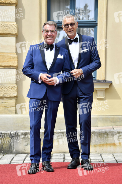 Patrick Lindner mit Ehemann Peter Schäfer bei der Eröffnung der 112. Richard-Wagner-Festspiele 2024 mit der Neuinszenierung von 'Tristan und Isolde' im Bayreuther Festspielhaus. Bayreuth, 25.07.2024