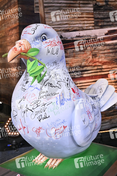 Von den Prominenten signierte Taube beim 27. RTL-Spendenmarathon 2022 im Studio 8 der EMG Studios. Hürth, 18.11.2022