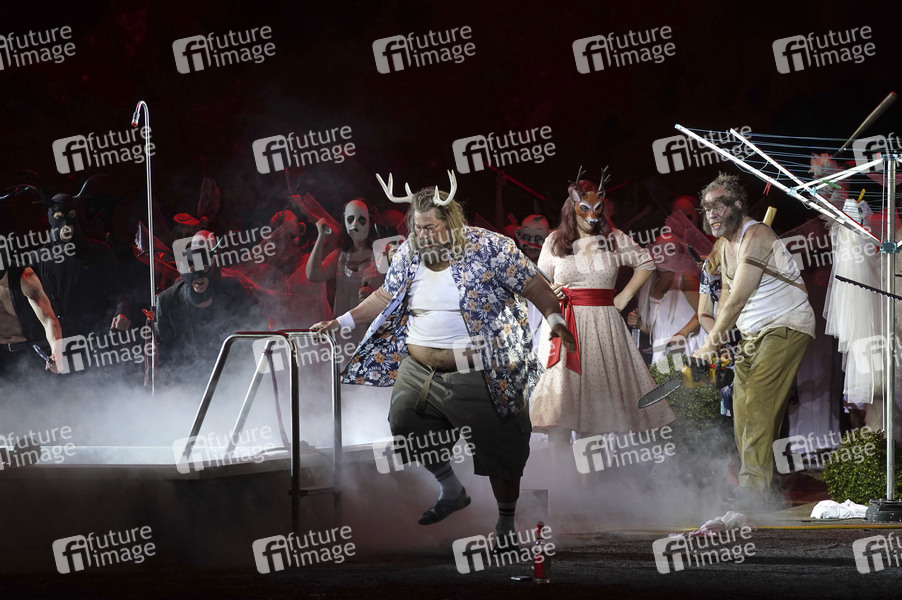 Rene Pape, Michaela Schuster und Michael Volle bei der Fotoprobe zur Neuinszenierung von 'Die lustigen Weiber von Windsor' in der Staatsoper Unter den Linden. Berlin, 30.09.2019