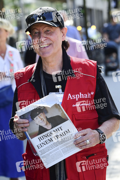 Klaus Meine verkauft das Straßenmagazin Asphalt zu dessen 30. Geburtstag in der Innenstadt. Hannover, 28.08.2024