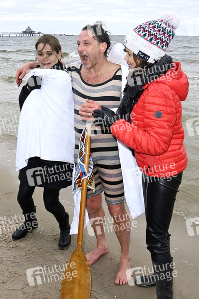 Anja Kling, Hendrik Duryn und Gerit Kling beim Baltic Lights 2022 Charity-Hunderennen zu Gunsten der Welthungerhilfe zwischen der Seebrücke Ahlbeck und der Seebrücke Heringsdorf. Heringsdorf, 06.03.2022